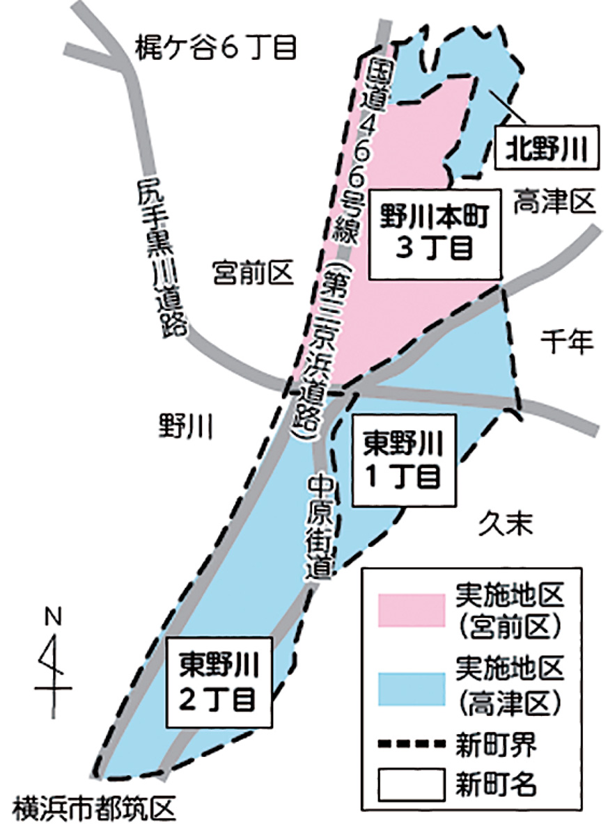 住居表示実施にともない、高津区の野川は「北野川」と「東野川1丁目、2丁目」に分けられ、宮前区は「野川本町」という町名に変更される。検討委員会にも出席していた地元住民の一人は「住所変更の手続きは手間になるが、分かりやすくなることで、新住民にとっても親しみやすい町になれば」と話した。