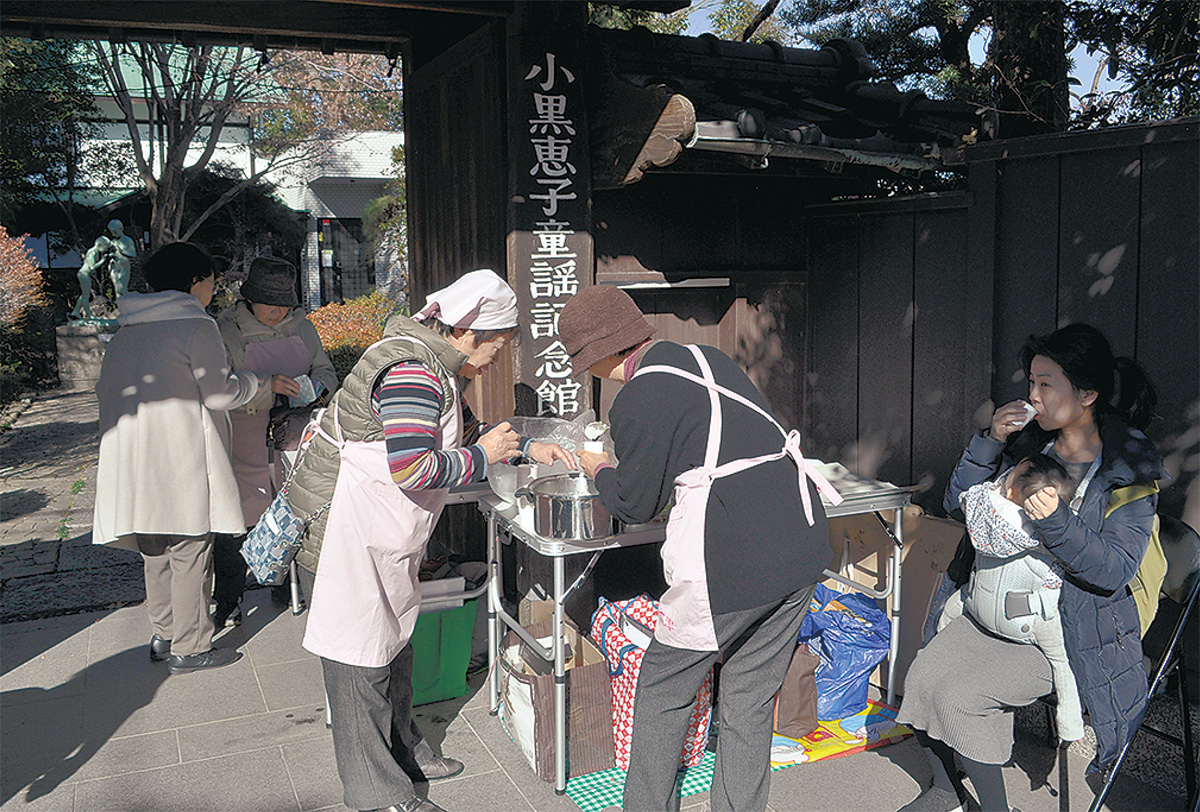 諏訪の小黒恵子童謡記念館で1月7日、来場者に七草粥が振る舞われた。