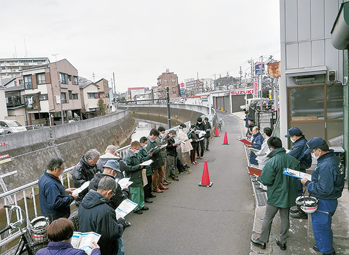 高津区内を流れる「矢上川」の流域で2月27日、川崎市や地元の消防団、地域住民などが参加した「共同点検」が行われた。洪水リスクを共有する事などを目的に行われたこの企画の意義とは―?