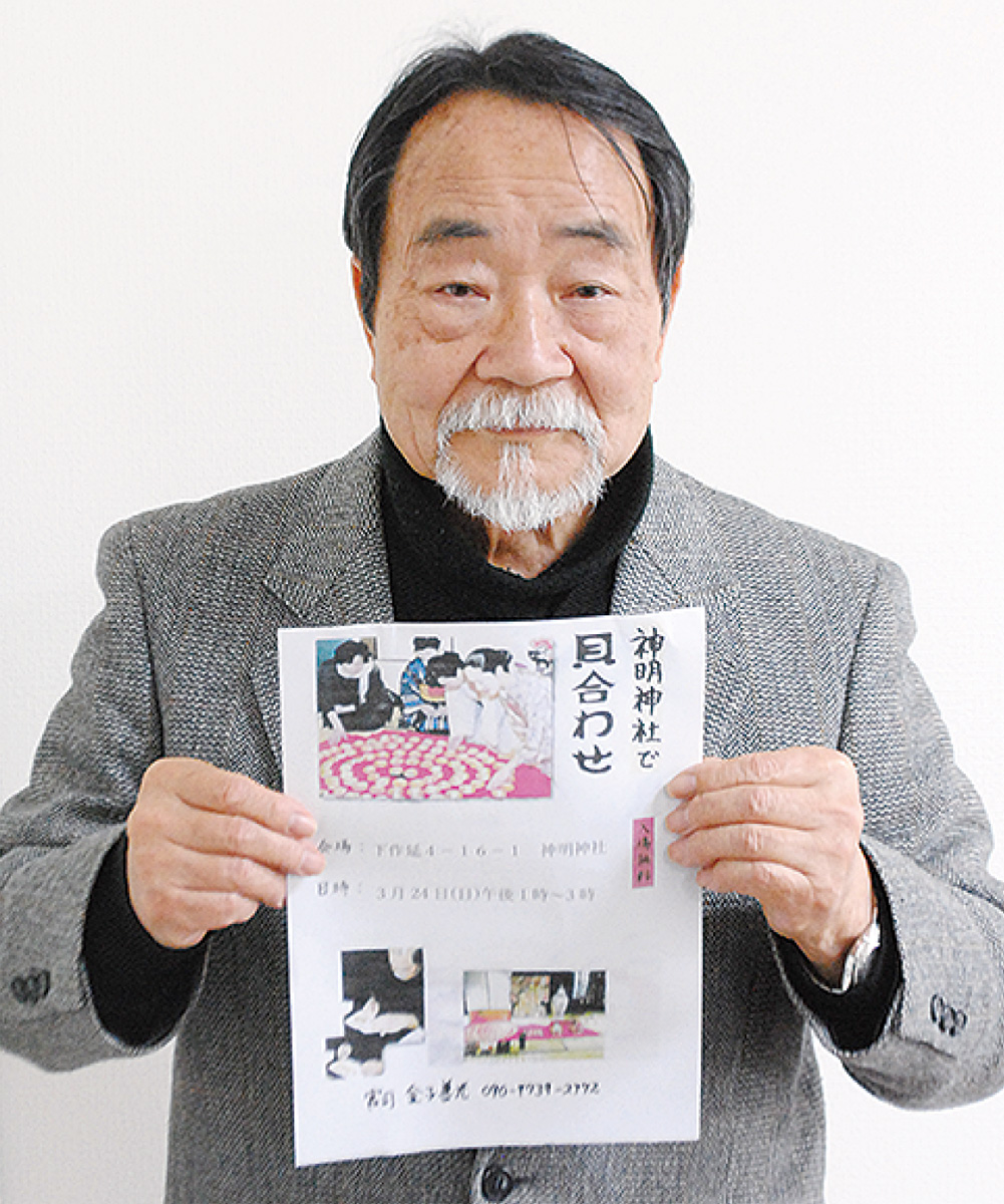 平安時代に貴族の間で始まったとされる「貝合わせ」が3月24日、下作延神明神社(金子善光宮司)で初開催となる。当日はおよそ90個の貝殻が並ぶ予定で、金子宮司(72)は「子どもから大人までが日本文化に触れ、楽しんでもらえたら」と話す。