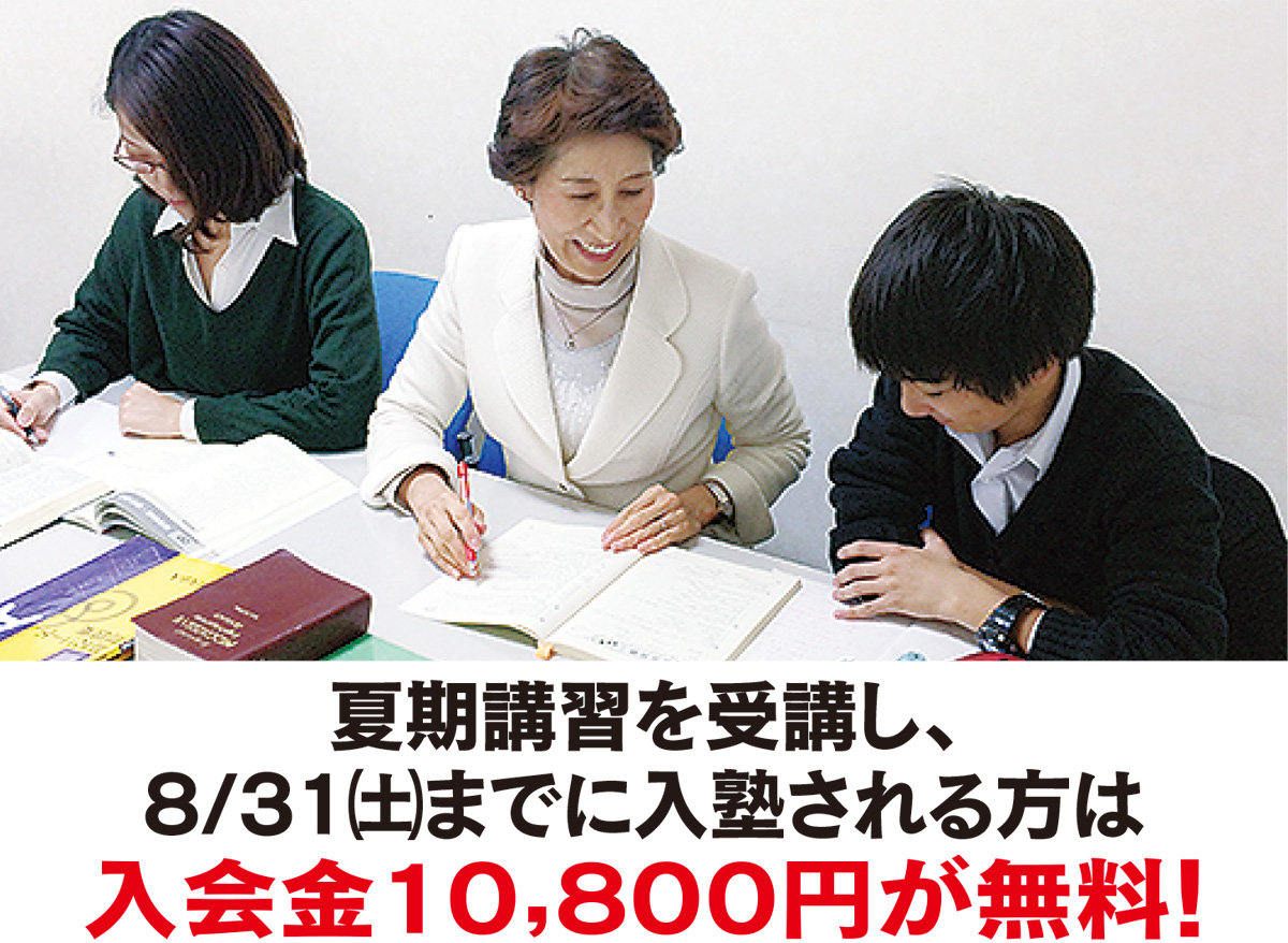 「積み重ねが大切な英・数は中2で大きな学力の差がついています。夏休みは、今までの総復習や、大学受験や内部進学に向けての真の学力をつける絶好のチャンス」と田ノ倉塾長は話している。