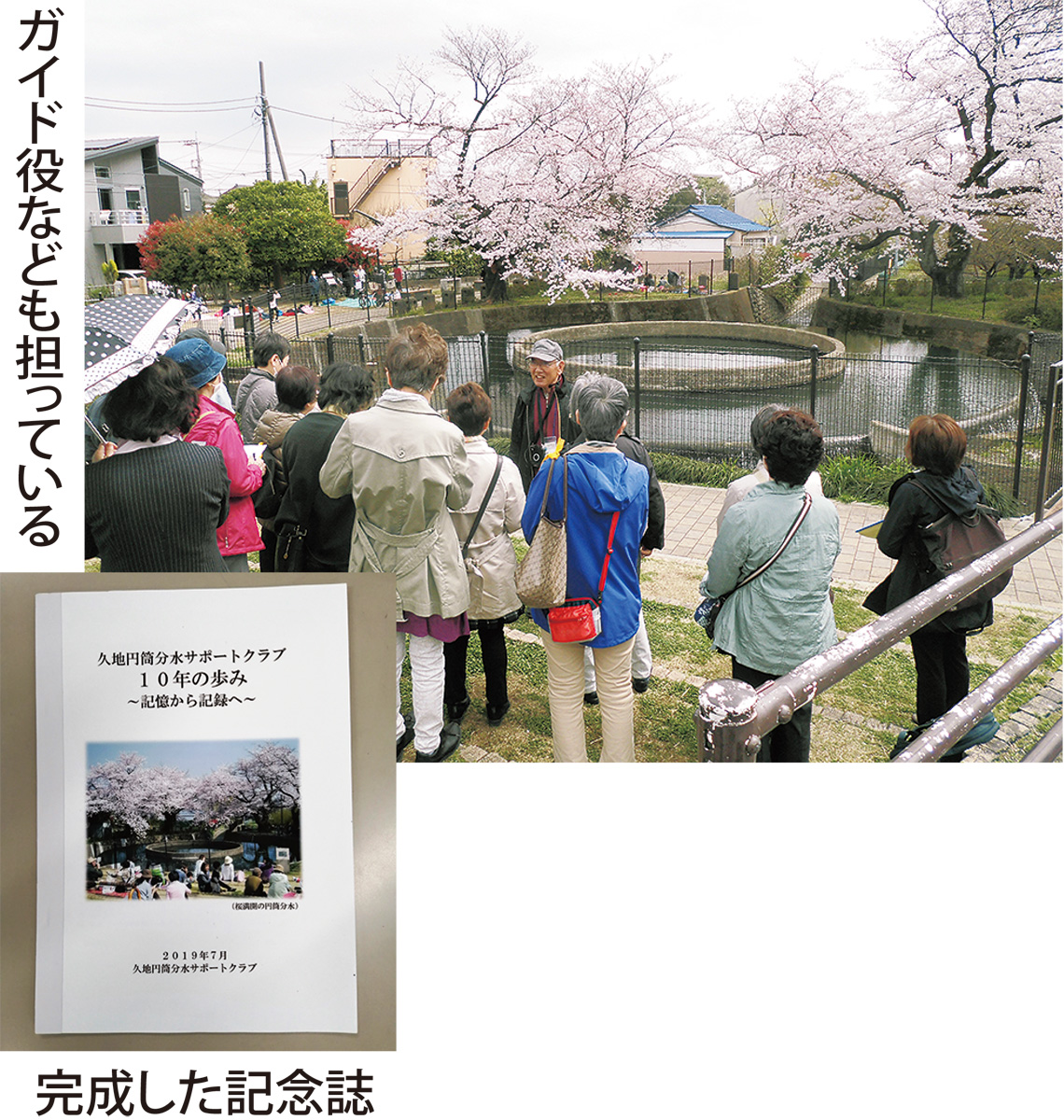 今回「記憶から記録へ」を合言葉に記念誌を作ったのは「久地円筒分水サポートクラブ」(吉田威一郎代表)。二ケ領用水の水を田畑面積に応じて平等に分ける事などを目的に1941年に完成したこの分水装置が一定の役割を終え、市民が集う憩いの場へと変貌を遂げた年(2009年)の翌年、地元有志らで結成された。