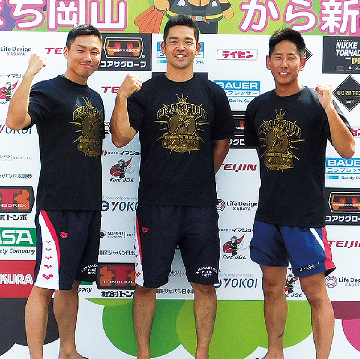 また、高津消防署に所属する宮本直也さん(警防第一課)、村上剛さん(同)城敬さん(警防第二課)と川崎消防署に所属する深野裕輔さんが出場した「水中検索救助」も全国入賞を果たした。タイムは1分5秒6で入賞9チーム中3位だった。