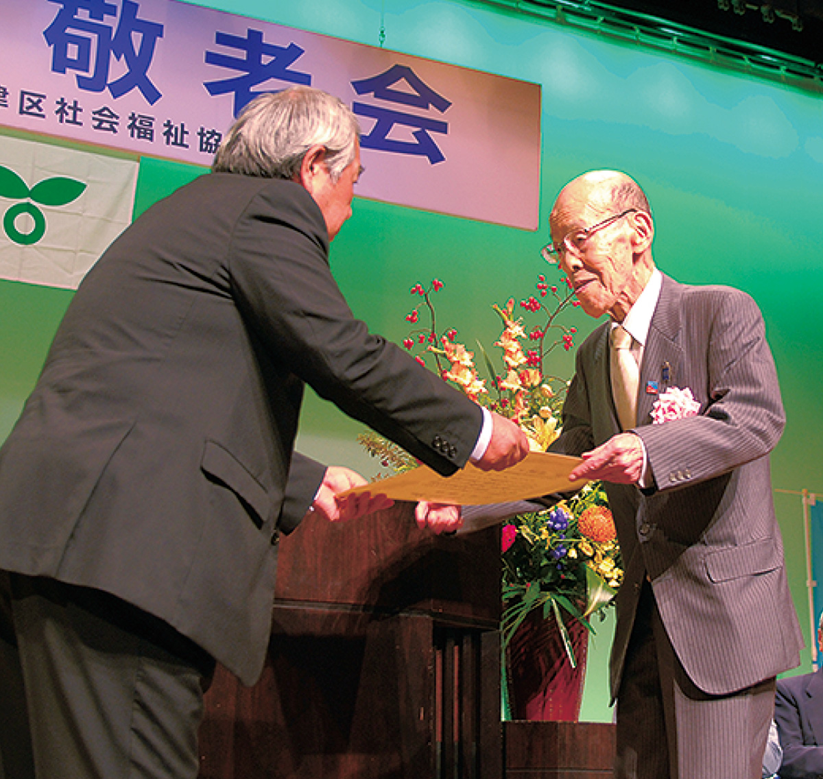 また、区社協の会長を32年間務めた斉藤二郎さんを始め、14人、2団体を表彰した。来賓で訪れた高梨憲爾区長は「社会や人とのつながりの豊かさは長寿につながるという調査もある。つながりを支援するような街づくりを行いたい」と話した。