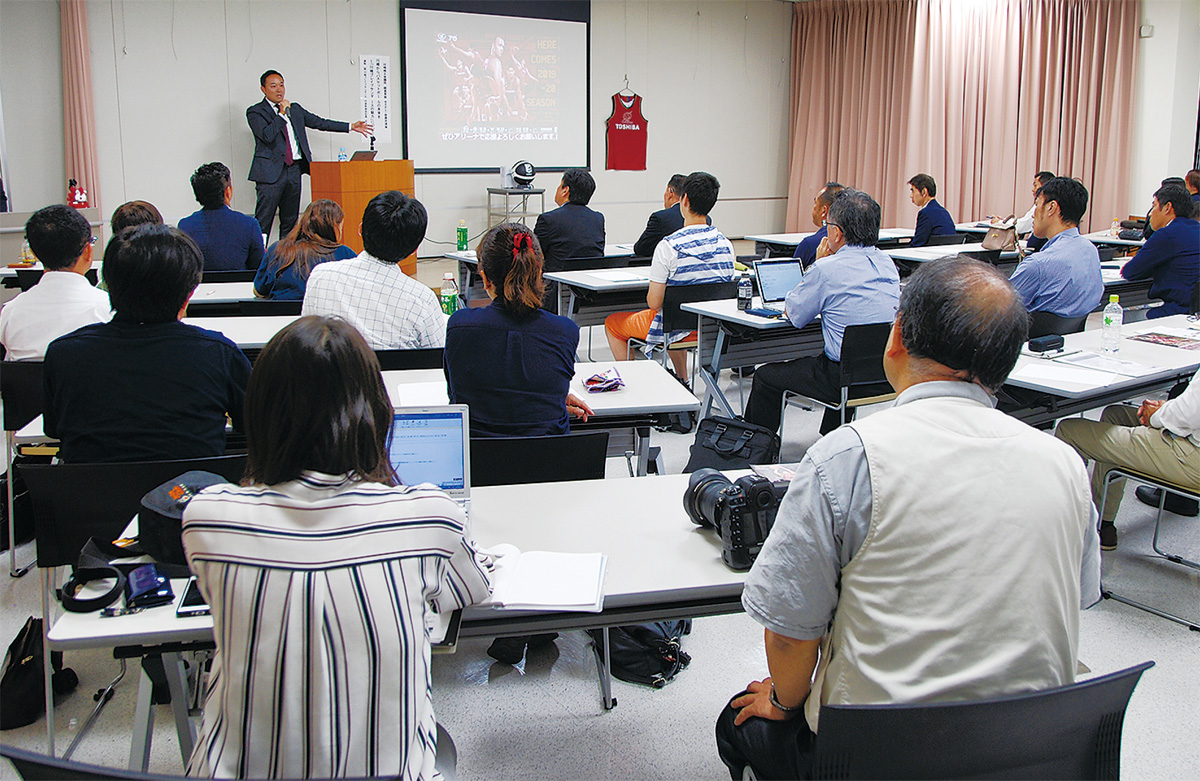 セミナーに参加した男性は「(前身の)東芝時代からみているが、観客動員が倍以上。みんなをワクワクさせるようなアイディアやパフォーマンスはさすが」と感心した様子。また昨年からチームを応援しているというコンビニ経営者は「自分の店にポスターを張って応援している。ファンが試合前に店に集まるような、応援する機運の高まりになれば」と話す。