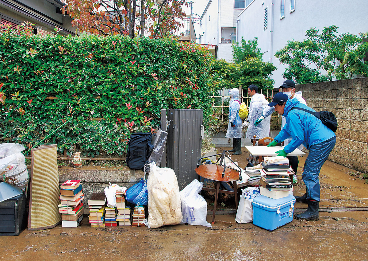 自身の住宅も床下浸水の被害を受けた同町会の藤原忠興会長は「電気も通らず、食事も作れない状況。高齢で一人暮らしの人もいるので、家具の搬出作業など、町会やボランティアの方たちの協力に感謝したい」と話す。