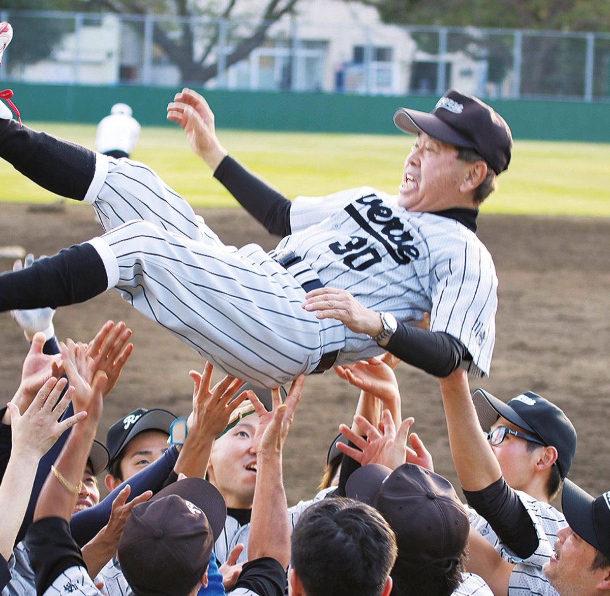 そんな「川崎リバース」のメンバーは最年長の監督(71歳)を筆頭に、最年少は成人したばかりの20歳まで年代どころか出自もバラバラ。唯一の共通点といえば「同じ焼鳥屋さんの常連客」という事。聞けば、溝の口に店を構える「いろは」の常連・瀧澤監督を慕い、野球好きが知らず知らずのうちに集い気が付けば今のチーム構成に。さらに店主の佐保田義樹さんが主将を務め、その息子さんが前出の佐保田投手。監督や主将によるスムーズな若手起用も実を結び、現在の隆盛に繋がっているのだとか。「巡り合わせの産物ですよ」と監督は謙遜するが、この勢い、まだ終わりが見えそうにない。