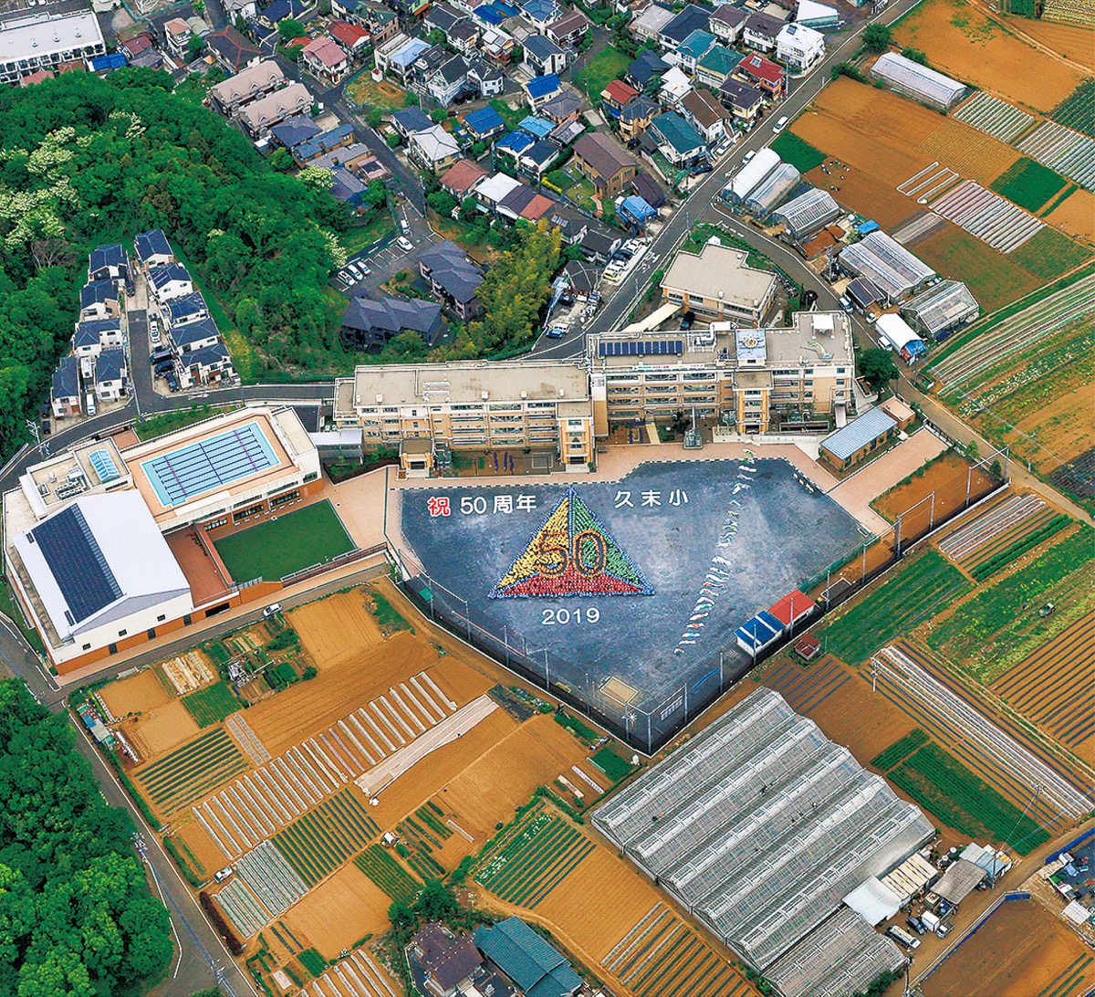 久末小学校は「地域の子どもは、地域の小学校で」という住民ニーズに応え、久末エリアの人口増加が著しかった1969年(昭和44年)に開校。校区やその周辺の豊かな自然を活かした取り組みや、地域と一体となった教育活動などを推進し、現在では900人を超える児童が通う大規模校へと成長。高津区における教育や文化の発信拠点としても大きな役割を担ってきた。この間、地域の人たちによる通学路の整備や校庭の除草、植樹などもあり、学校周辺の環境整備が進捗。2016年(平成28年)には学校敷地内に「ひさすえアリーナ棟」も完成し、一連の校庭整備も完了。現在に至っている。