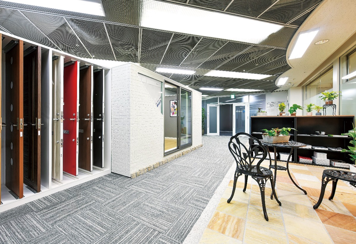 創業49年の地域密着型企業「ヤオキ商事」が、新オフィス併設のショールームとして手掛け、このほど完成したこの空間。デザインと機能性を兼ね備えた、豊富な設備や資材を体感できるモダンなつくりに仕上がっている。