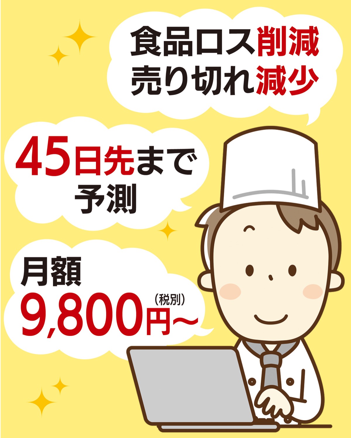 AIを活用することで、これまで現場責任者の経験や勘に頼っていた来店客数の予測精度をあげ、食品ロスや機会損失を削減をさせるのが狙い。システムは、過去の来店客数や天候データをもとに最大45日間の数字をはじき出す。客数の増減があった場合にはその変化も検知し対応する。