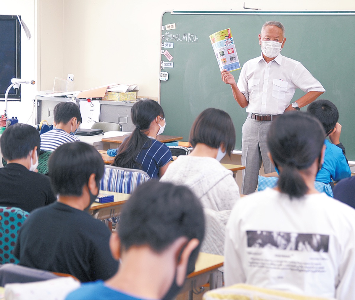 授業を受けた児童は、「自分や周りの人にも害があり、人生を壊してしまうことがある」と、真剣な表情で感想を語った。6年生の担任、内元亮太教諭は「スマホなどで子どもたちの活動範囲が広がる中、薬物に関する正しい知識を身に着けることが大事。今日の授業で身近で怖いものだと感じたと思う」と話す。