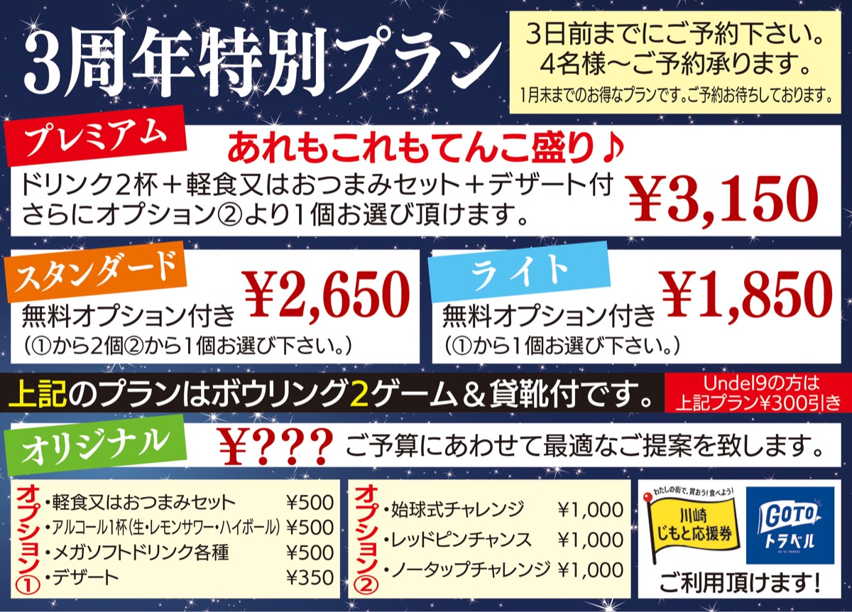 A毎週水・金曜日には大人の方向けレッスンも開講していますので、このコーナーをご覧の皆様にはこのレッスンのお試し受講を無料で体験頂けます(紙面持参のレッスン初めての方に限る/12月25日(金)まで)。またムサシボウルでは年末のご予約や「3周年特別プラン」(左欄参照)も好評承り中です!幹事様の代わりにご予約プランナーがお客様のご予算にあわせて最適なプランを案内致します。詳しくは左欄やホームページをご覧下さい、お電話によるお問い合わせも大歓迎です。