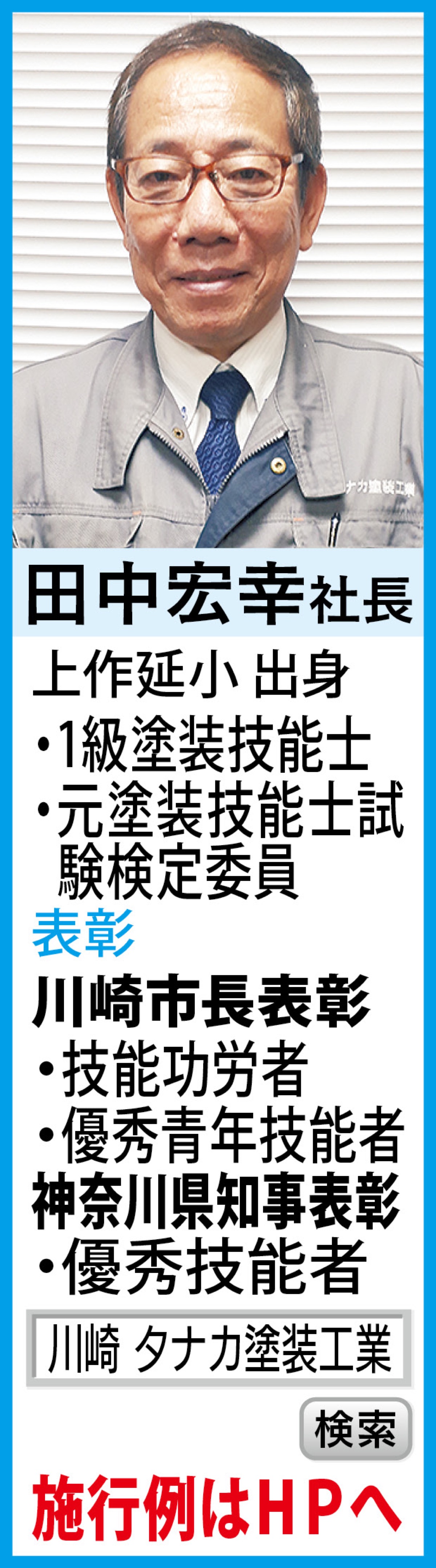新年を迎え、今年やりたいことや目標を整理する人も多いのでは。創業半世紀を誇る(有)タナカ塗装工業の田中宏幸社長は「自宅の塗装工事をして10年ほど経っているというご家庭は、この機会に外壁をよく見て、触ってみてほしいです。手に白い粉がついたり、ひびや藻があれば『塗り替えの年』と考えてよいかもしれません」と話す。