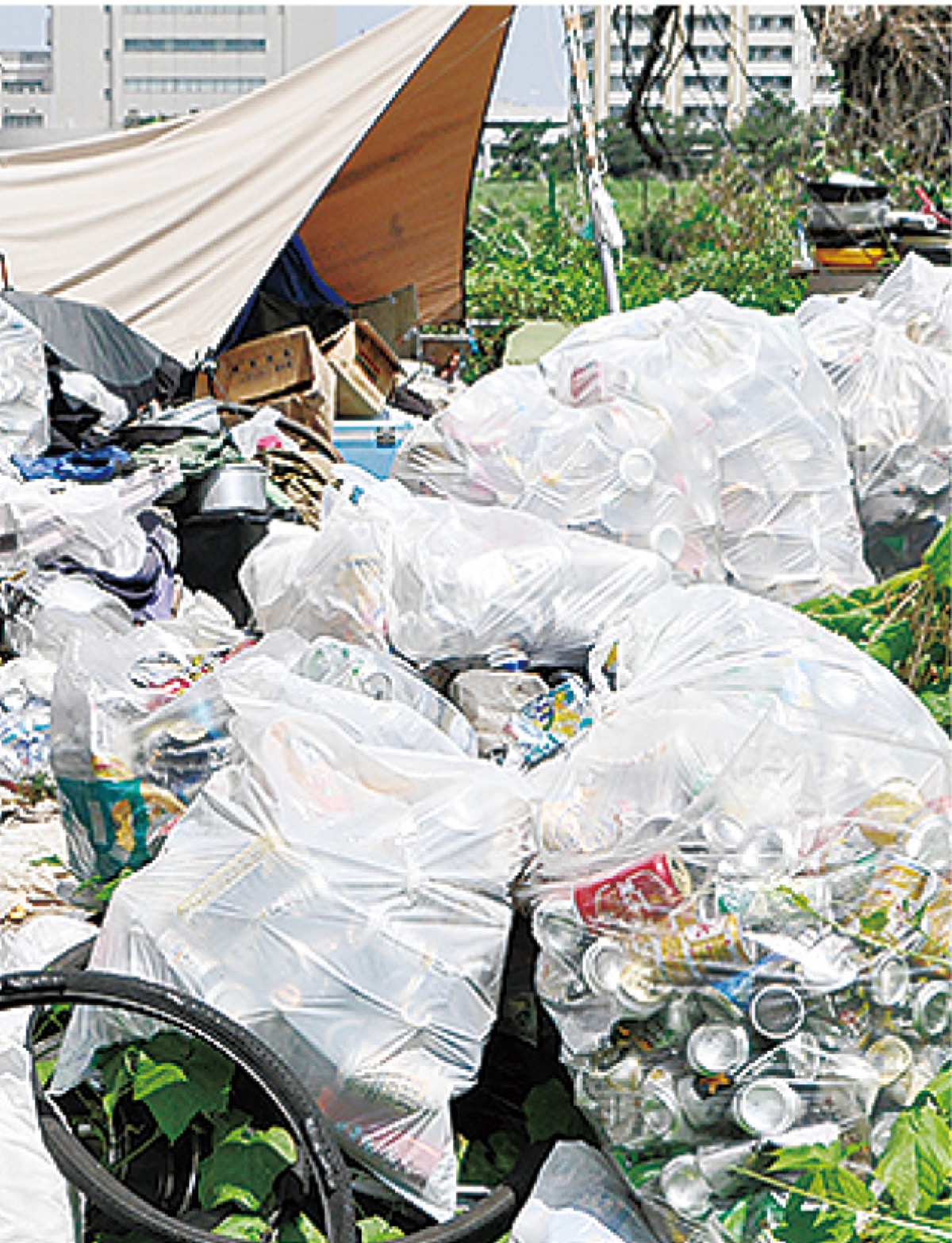 市内では集積所に出された資源物の持ち去り行為が後を立たず、騒音やごみの散乱などへの苦情が寄せられている。持ち去られた資源物の額は2018年度までの5年間で2億3千万円に上ると市は試算。一方、ホームレスにとってはアルミ缶が生活の糧になっている状況もあり、支援団体からは人権擁護を訴える声も上がっていた。