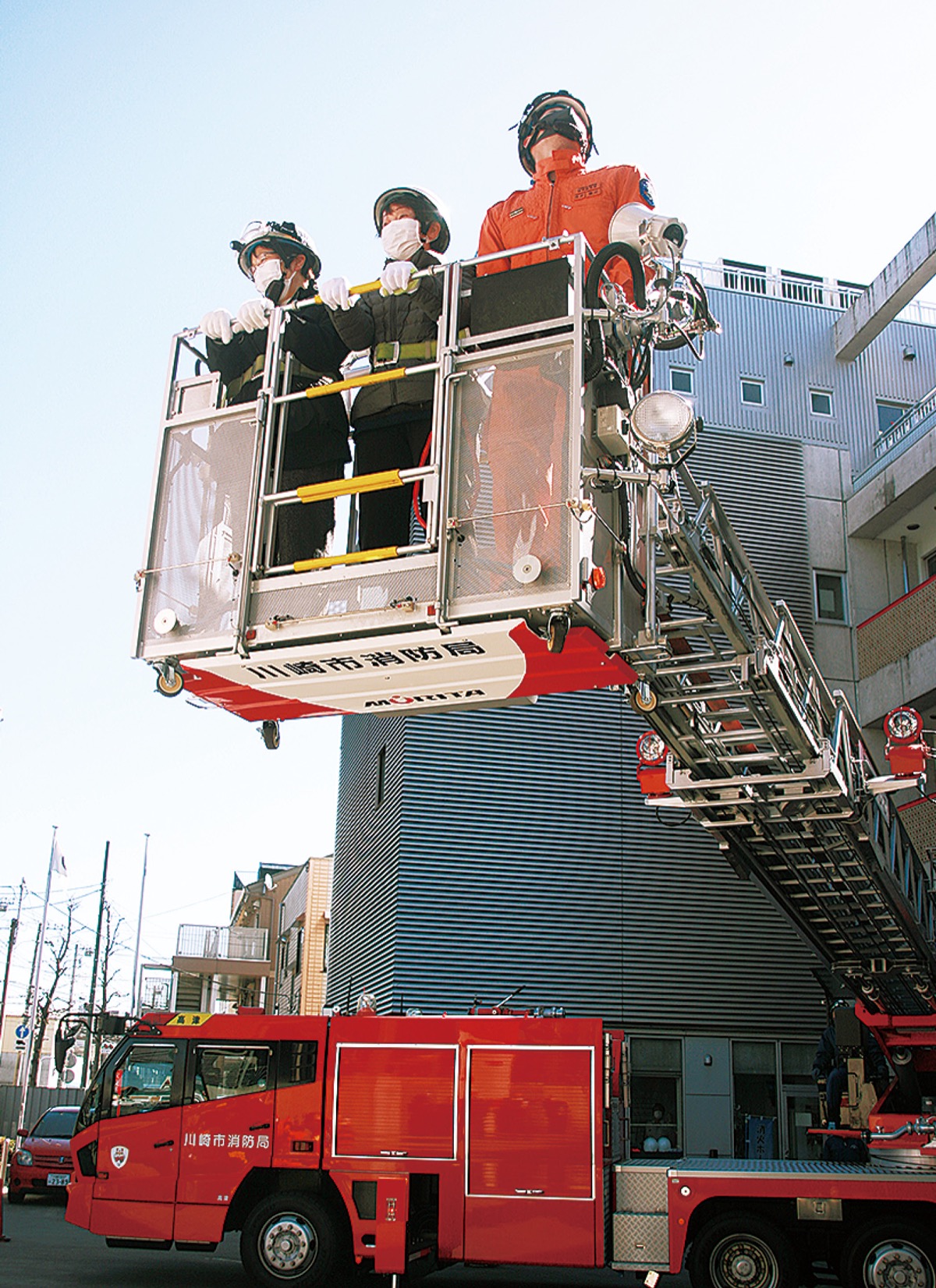 表彰セレモニーは3月3日、高津消防署内にある講堂で行われ、藤久保会長のほか中心メンバー10人が参加。一人ひとりに藤原署長から感謝の言葉と表彰状が手渡され、記念撮影では皆、晴れやかな笑顔をみせていた。またセレモニー終了後、はしご車への体験乗車の「ご褒美」も用意され、皆嬉しそうな表情を浮かべていた。
