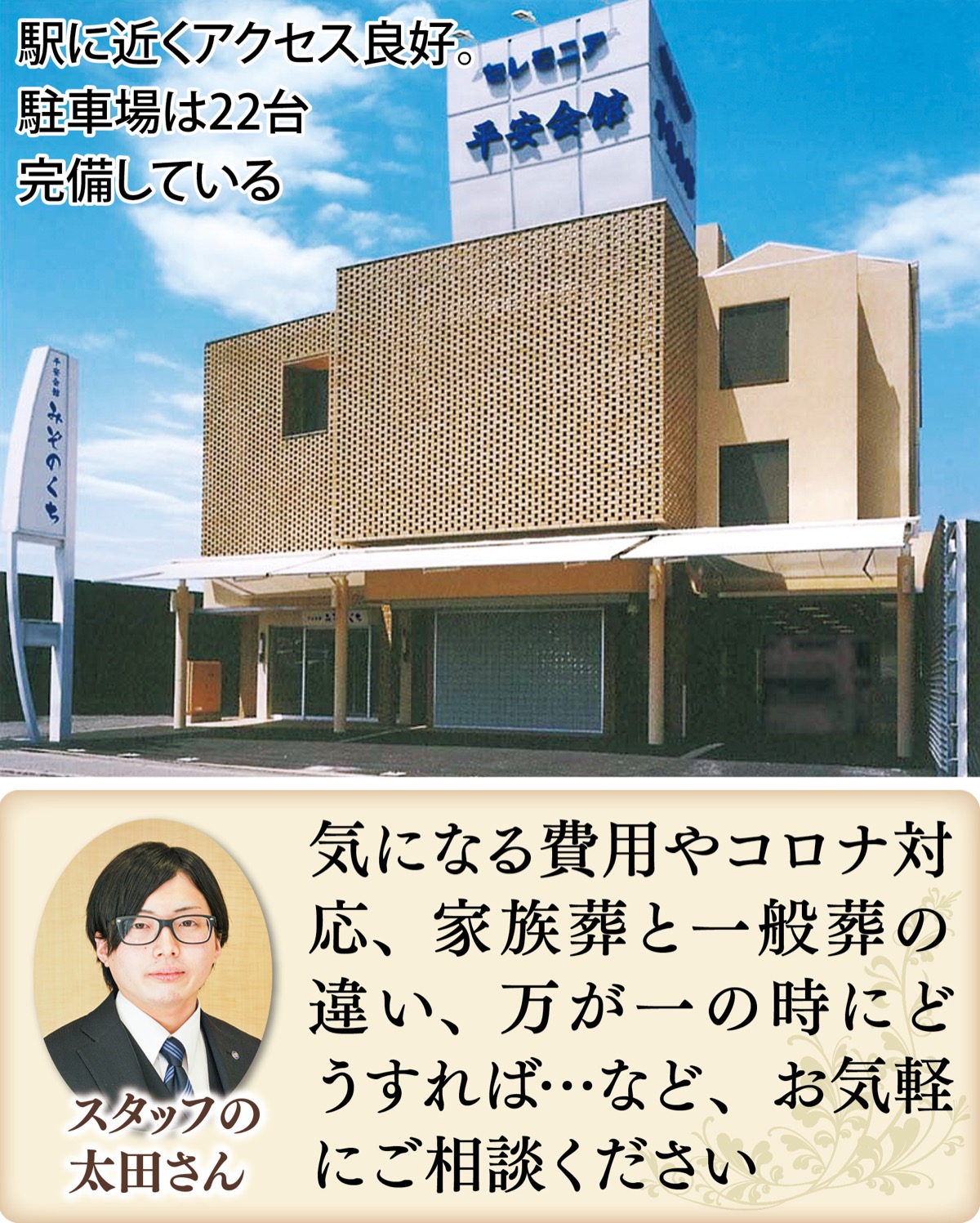地域に寄り添い真心の葬儀を提供しているセレモニアグループ『平安会館みぞのくち』。気になるコロナ禍での葬儀について、同館スタッフ太田健斗さんに話を聞いた。