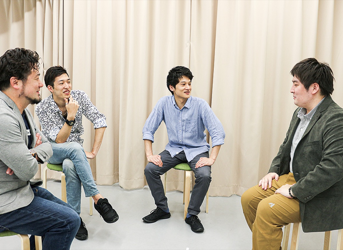 • 左から永野隆満代表(作曲)、講師の盛田将太郎さん(バレエ)、山崎尚輝さん(ピアノ)、藤原大輔さん(ミュージカル)