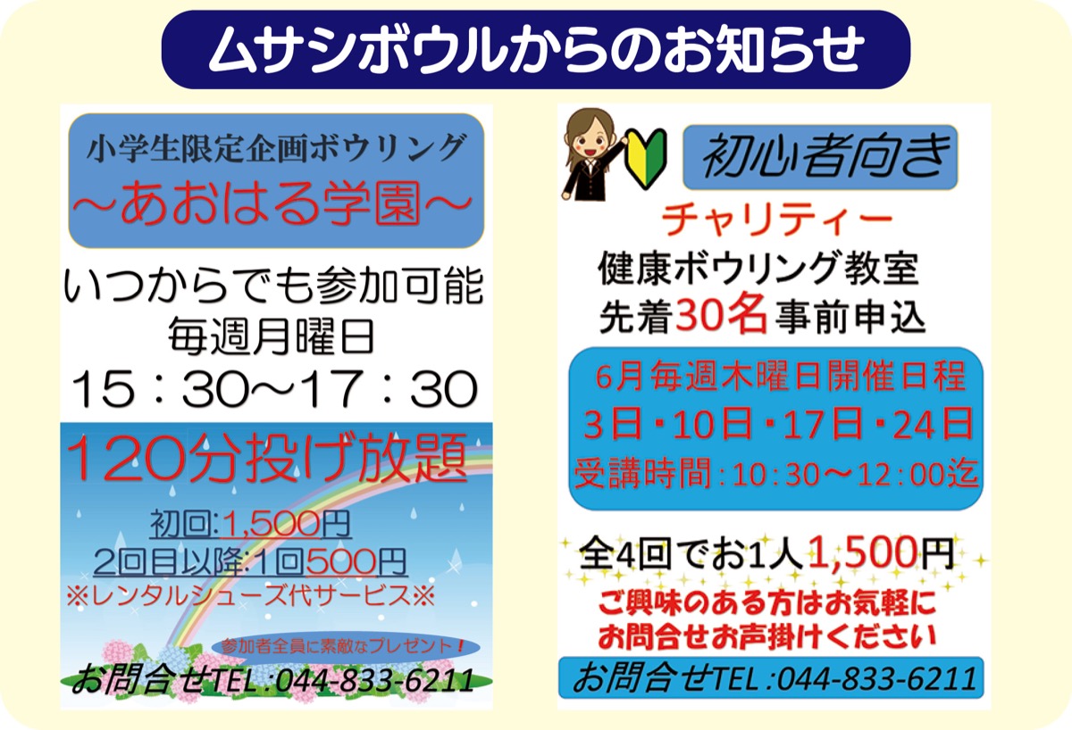 ムサシボウルでは私がプロボウラー&トレーナーとして身につけた知識と経験を活かした「ボウリングに効果的なストレッチ」も学べる「チャリティー健康ボウリング教室」を5月より毎月開催しております。6月は私が講師をさせて頂きますので是非お気軽にご参加下さい。お問い合わせもお待ちしております。