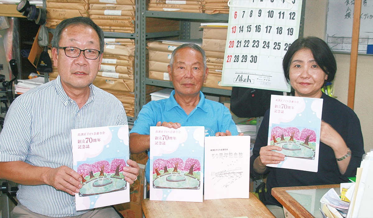 編集に携わった広報委員長の須藤かおりさんは「会員数の低迷が課題とされている中、どんな活動をしているか周知するために、『読んでもらえるもの』にしなければならなかった。多くの人が関わるような誌面になるよう心掛けた」と振り返る。石橋会長は「多くの協力により完成できた。子ども会の取り組みが手に取るようにわかる内容の濃いものになった」と話す。記念誌は区役所やこども文化センターで閲覧できるようになる予定。
