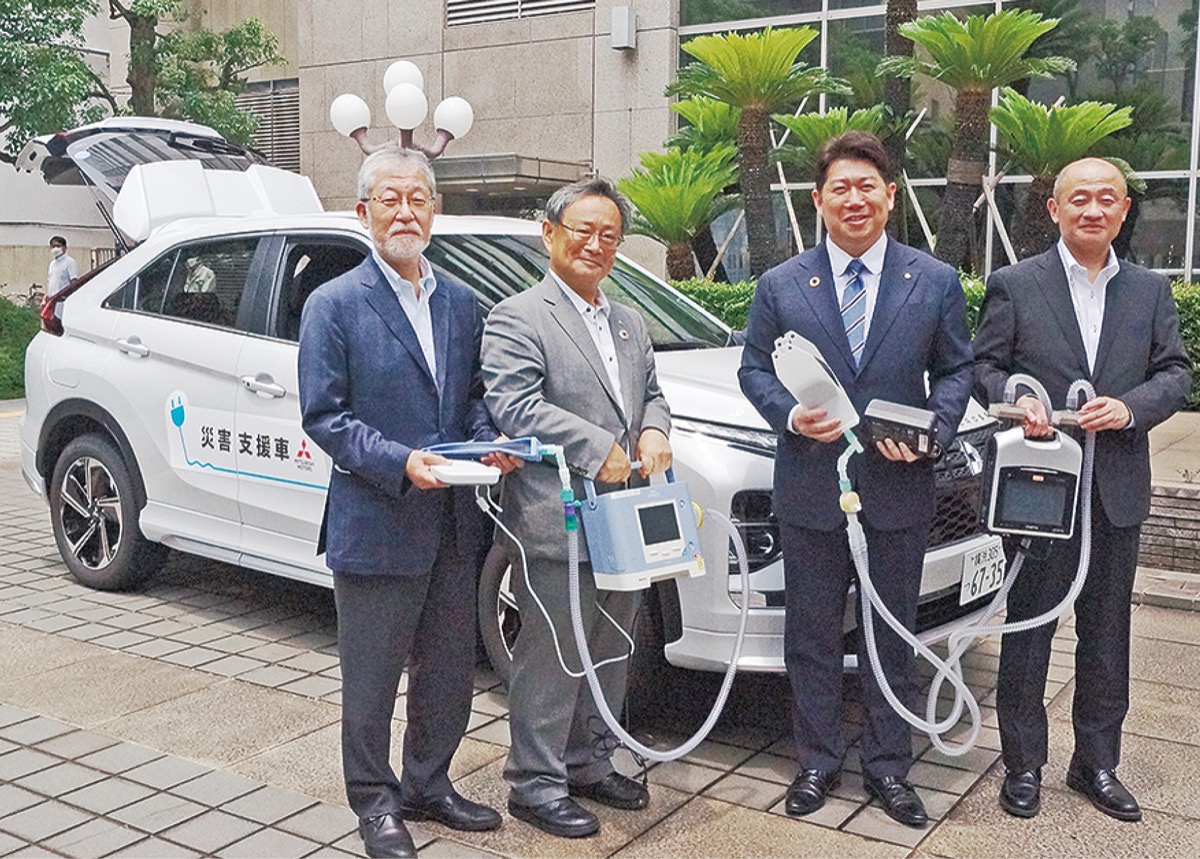 三菱自動車の若林陽介執行役員は「医療機器への給電はかねてからの課題だった。これを機にさまざまな場面で貢献をしていきたい」とあいさつ。福田市長は「停電時に不安を感じてきたが、医療機器を使用している在宅患者の方の安心につなげることができる」と語った。