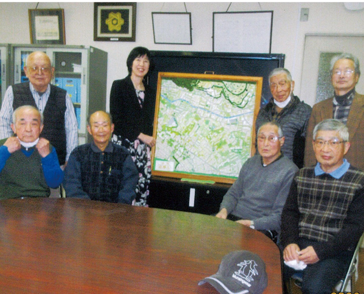 上作延周辺の環境や背景などを立体的に表したこのジオラマ作りは、コロナ禍の影響で従来の催し等が軒並み中止となった同会が、新たな活動の方向性を求めて昨年初めて実施したもの。参加したのは籾山会長のほかメンバーの三田久幸さん、小泉春夫さん、渡辺晃さん、益寿計さん、清水輝男さんの6人。さらに今回から新たに小原有三さん、関口隆雄さん、船木忠武さん、三田義之さんの4人が加わり、有志10人が、約半年間にわたり制作に取り掛かった。