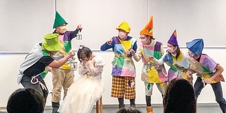 「にこぷら新地」で行われたこの公演は、三沢さんが代表を務める「THEアート・プロジェクト多文化読み聞かせ隊」の活動の中から生まれた、障がいのある若者たちのグループが「しらゆきひめ〜パントマイムと音楽・ダンスでつづる〜」に挑戦したもの。