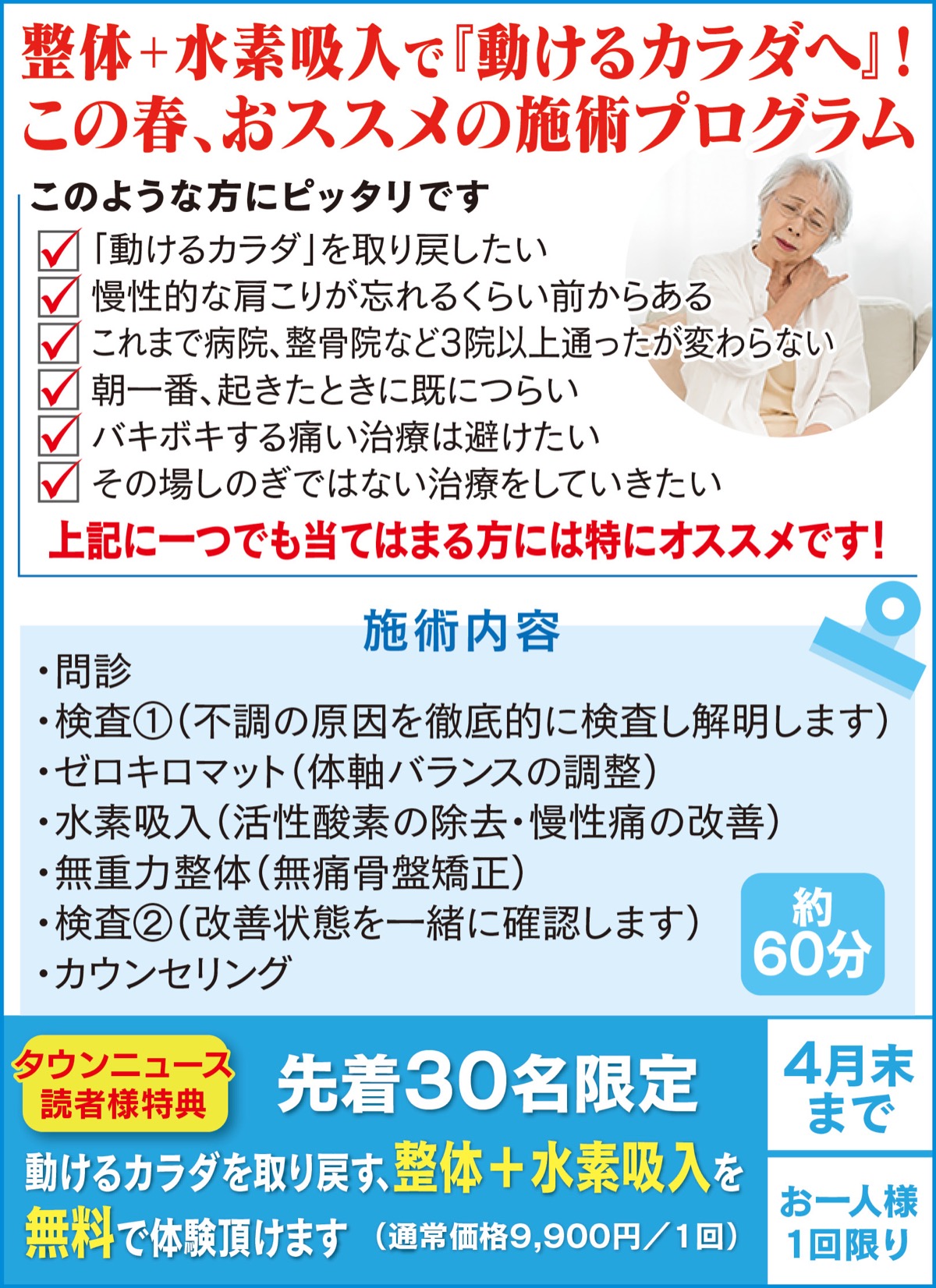 この春「整体+水素吸入」で動ける身体を取り戻そう!