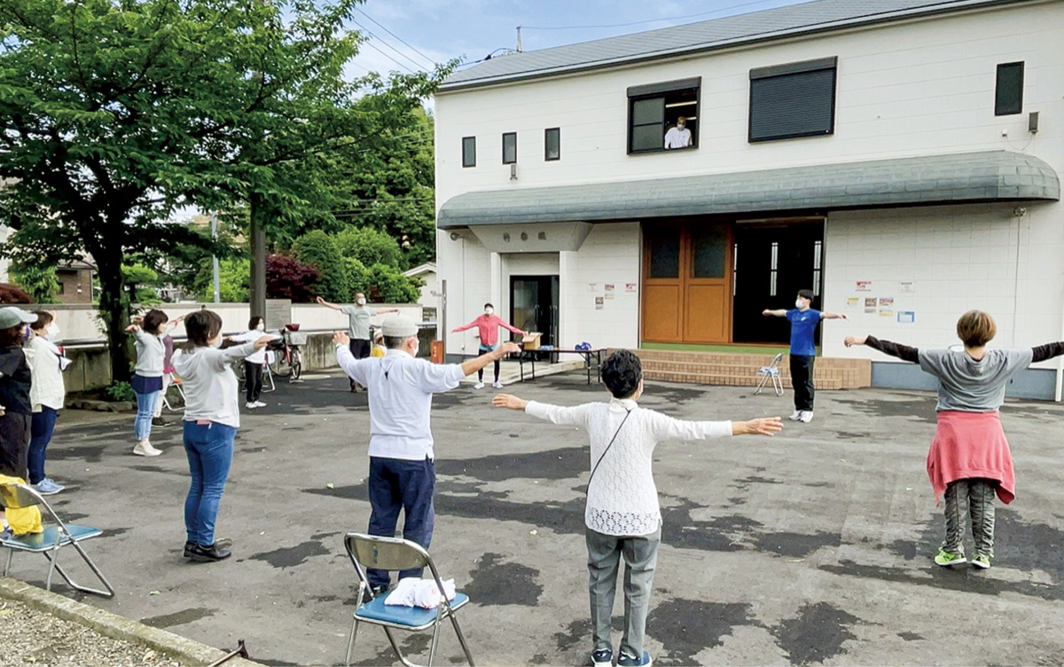 毎週1回、地域のみんなで体操を―。坂戸御嶽神社では毎週末、近隣住民向けの青空体操を開催している。回を重ねるごとに住民同士の交流の輪が広がり、健康づくりにも一役買っている。