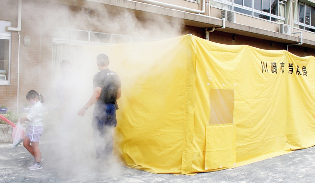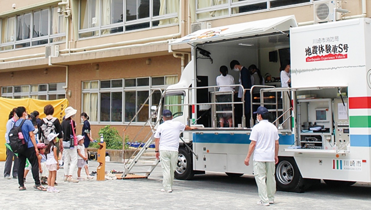 橘小学校を校区とする子ども会の恒例イベント「やってみよう!」が7月3日、同小で開催された(橘小区千年子ども会、千年新町子ども会共催)。コロナ禍の影響で3年ぶりとなったこの催し。当日は直前の雨や炎天下にも関わらず、子どもから大人まで180人以上が来場。高津警察署交通安全課による白バイ展示や親子で体験できる自転車教室が行われたほか、高津消防署新作出張所からは煙発生時の視界の悪さを体感できる煙テントや起震車も登場。また日本赤十字によるAED講習会や地元のサイクルショップによる安全点検なども用意され、イベント内容は盛り沢山といった様子。さらに橘中学校演劇部による未成年犯罪に焦点をあてたステージ、美術部やボランティア部によるイラスト指導、大学生と地域の方による将棋とオセロのコーナーなどで、子どもから大人までが楽しい時間を過ごしていた。