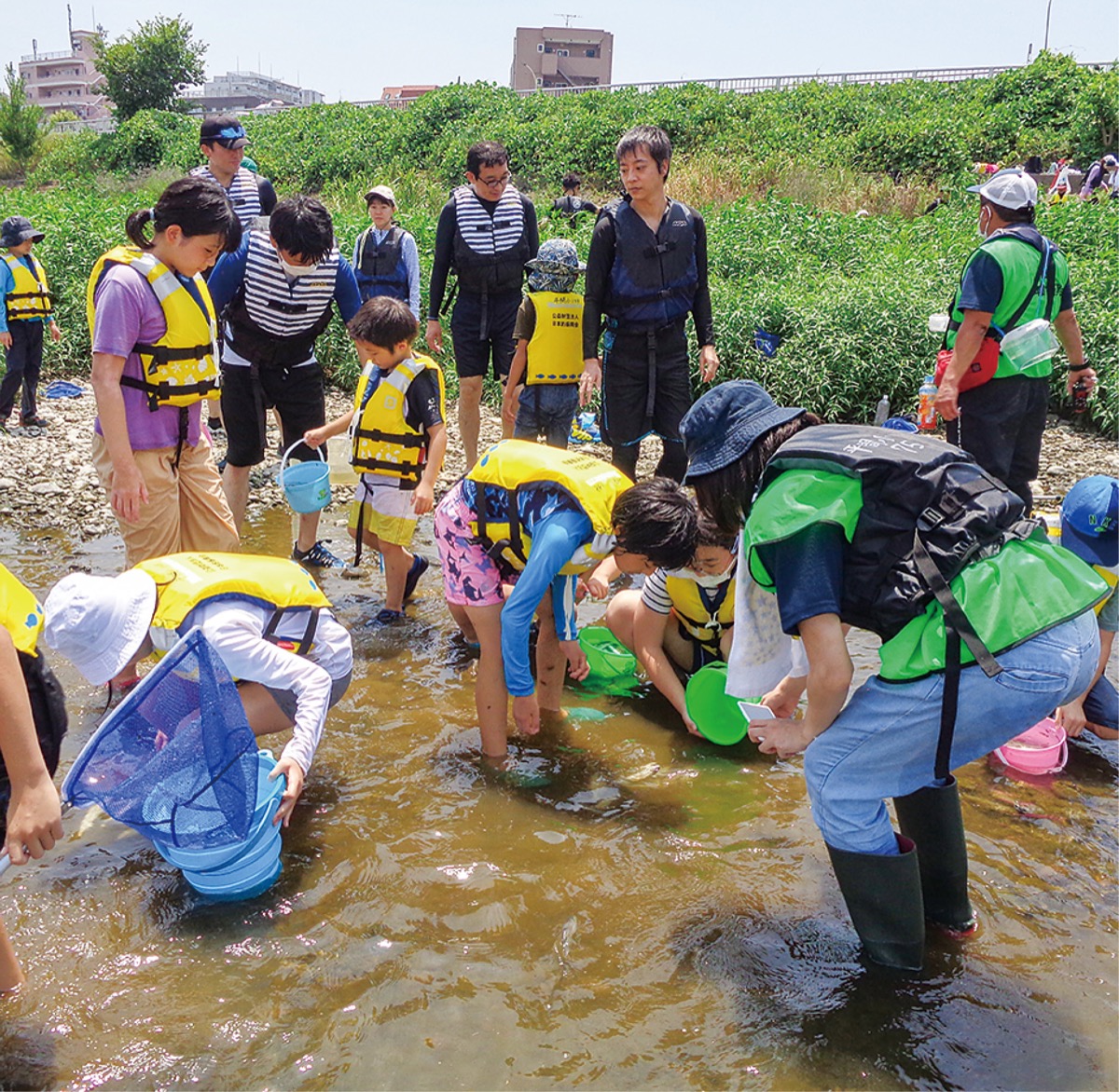 また当日は、川崎河川漁業協同組合(竹仲密昭組合長)もイベントに全面協力。同組合も加盟する県の「内水面漁業協同組合連合会」が運用している中間育成施設(厚木市)へ出向き、アユの稚魚を調達。日本釣振興会が用意した事業費を基に延べ約2千匹を多摩川に放流した。組合では単独事業としても4月にアユ放流(1万5千匹)を行った後、先月下旬にも追加放流(約8千匹)を実施している。
