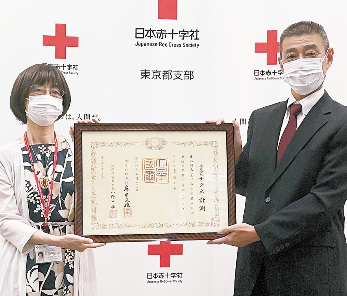 区内二子に本社を構える「株式会社テクネ計測」(永谷寿邦代表取締役社長)が、日本赤十字社に対して継続的な寄付を行った功績を認められ紺綬褒章を受章した。これは国の褒章制度の一つ。公益のために私財(個人500万円以上、団体1000万円以上)を寄付した個人または団体に授与されるもの。