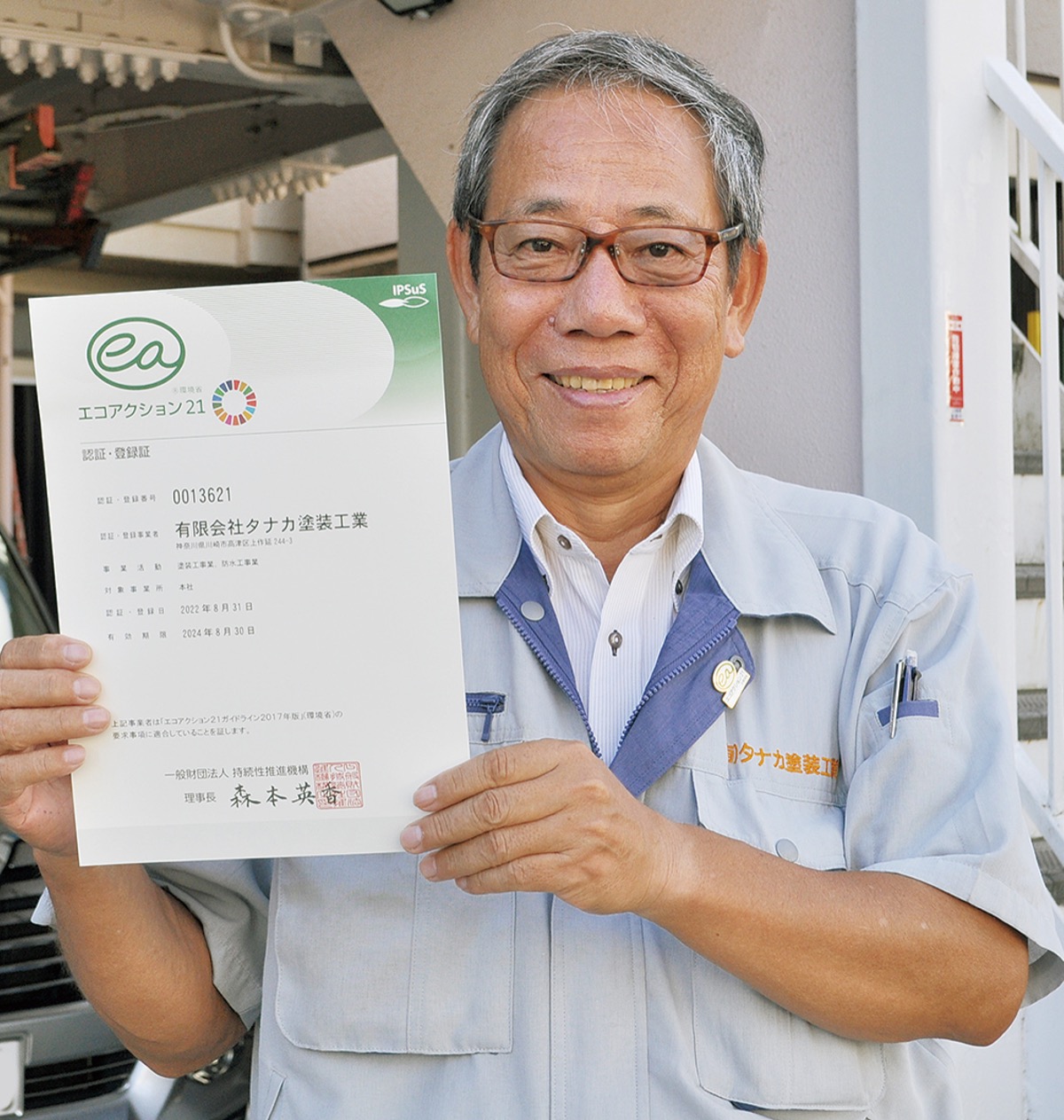 塗装、防水工事業を手がける上作延のタナカ塗装工業(田中宏幸代表)は、環境経営に取り組む企業として環境省の「エコアクション21」に認証・登録された。