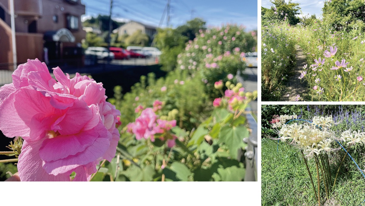 このスポットは、地域住民らが雑草を刈り花々の世話をするなどして管理。早朝から草刈りをしている地域住民は「見事に咲いてくれた。ぜひ観に来てほしい」と呼びかけている。