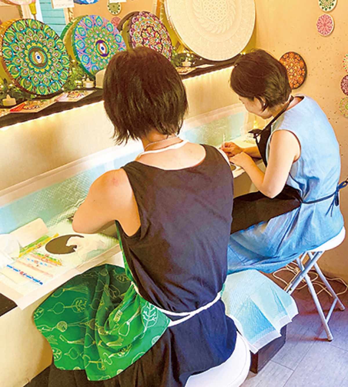 加藤さん自身、主だった芸術活動の経験はなく「曼荼羅アート」と出会いドットマンダラの技術を習得し、瞬く間に人気アーティストの仲間入りを果たした異色の存在。工房は来春までの期間限定だが「多くの人の心を癒す活動を、ずっと続けていきたいですね」と話している。