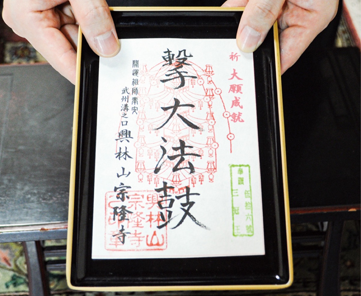 この御朱印には「太鼓の大きな音がこだましていくように御仏様の教えが、太く遠くへ届くように」という想いを込め「撃大法鼓」という文字と、右下には、村上選手の新記録56号と三冠王を記念した「伍拾六號、三冠王」という文字が、チームカラーである緑色で記されている。特別な御朱印は既に1000人以上が拝受しており、中には村上選手の背番号「55」に因んで、55円や550円の賽銭を納める姿も。さらに同寺の裏にある「高津」幼稚園も巡礼ルートになるなど、ファンにとっての聖地化に拍車が掛かっている。