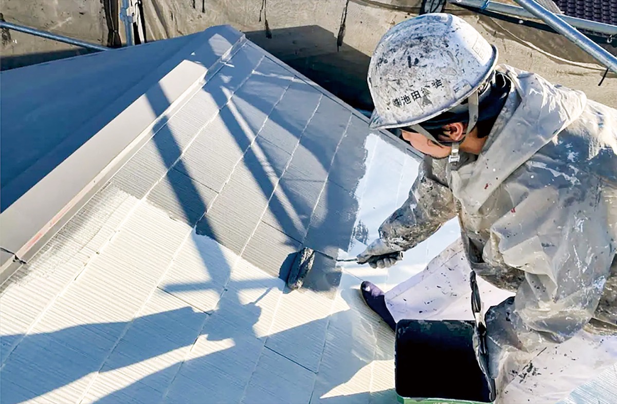 これは耐久性などはもちろん、遮熱や断熱性能を備えた塗料によって大幅な省エネを実現するもの。池田代表は「例えば遮熱性を高めた塗料であれば、夏場の冷房設定温度を3度上げることが可能。サウナ状態の最上階も快適です。またこれからの季節、断熱性の高い塗料は外の冷気から室内を守り、暖房効率が各段にアップします。結果ガス代、電気代の節約につながる事は言うまでもありません」と話す。