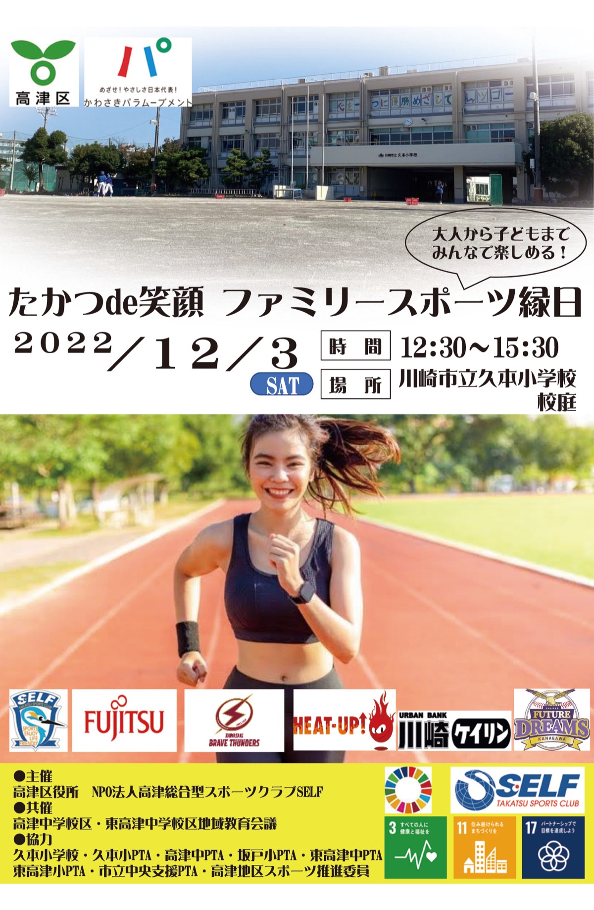 区内にある久本小学校の校庭であす12月3日「たかつde笑顔 ファミリースポーツ縁日2022」が行われる。コロナ禍の影響で3年ぶりの開催。関係者は「(感染症対策などを講じ)皆さんが安心安全に楽しめるイベントを企画しましたので、ぜひ多くの参加を」と話し、広く来場を呼び掛けている。