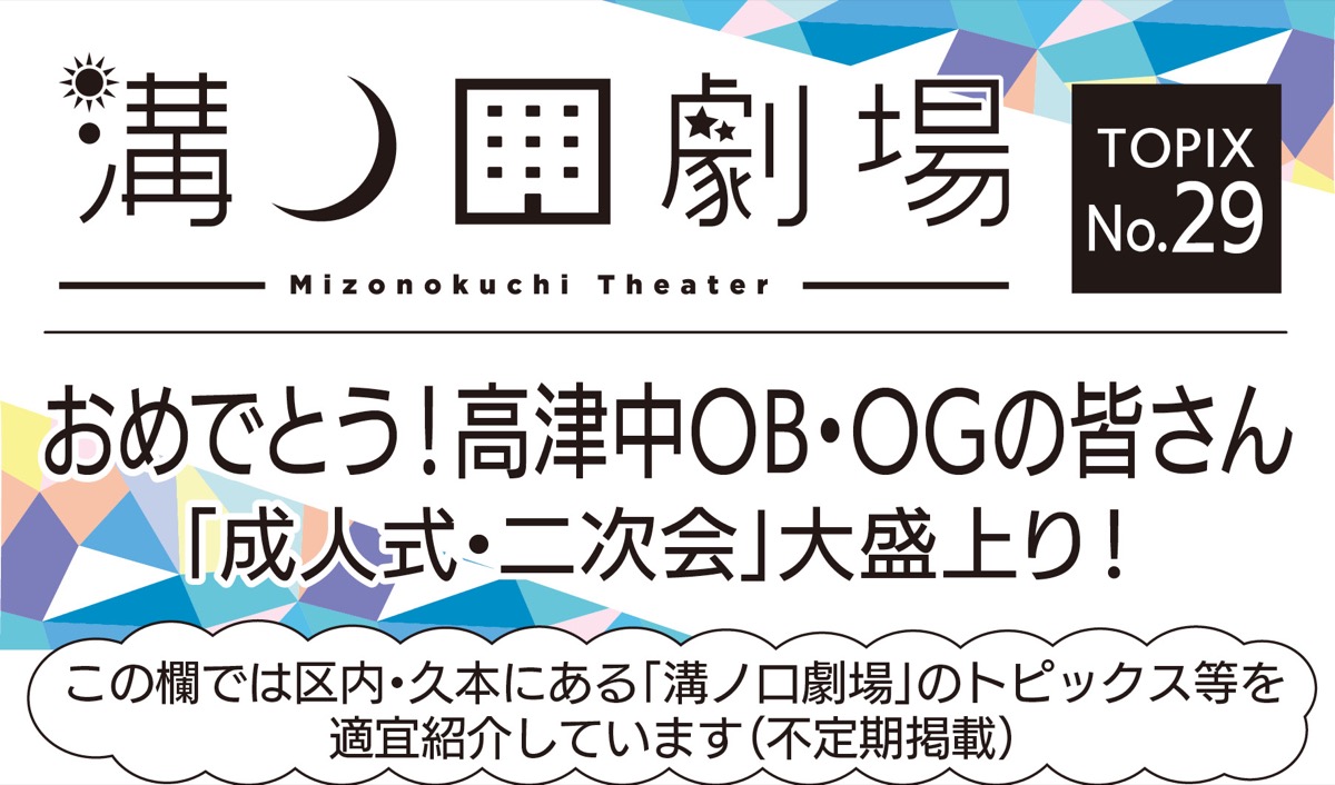 今後も30歳、40歳と節目の同窓会や、会社の忘年会、子どものサッカークラブの卒団式など、色々な場面で溝ノ口劇場に帰ってきてくれたら嬉しいな、と思いました。
