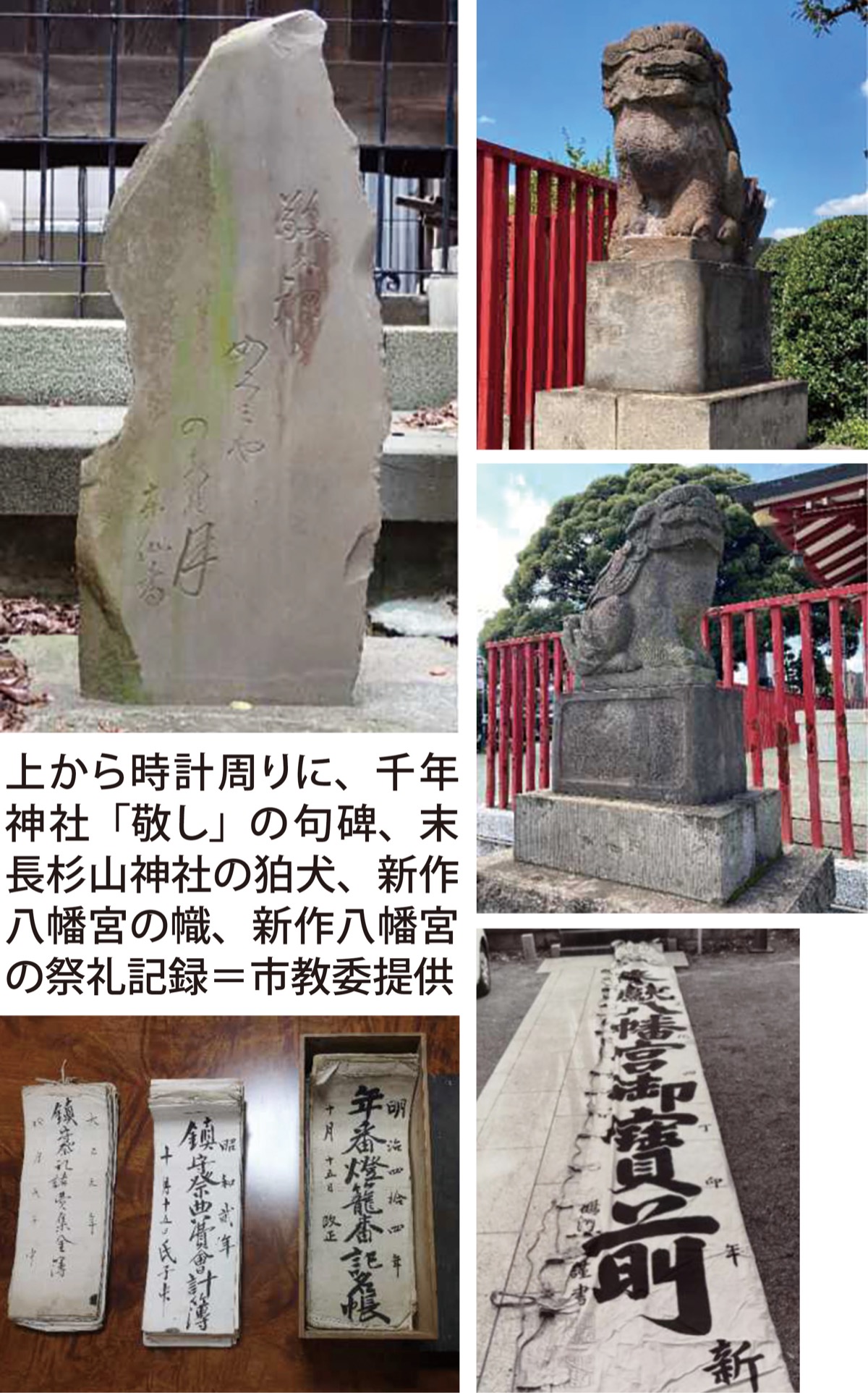今回、高津区内から選ばれたのは千年神社「『敬し』の句碑」、末長杉山神社の「狛犬」、新作八幡宮の「幟」と「祭礼記録」の計4件。