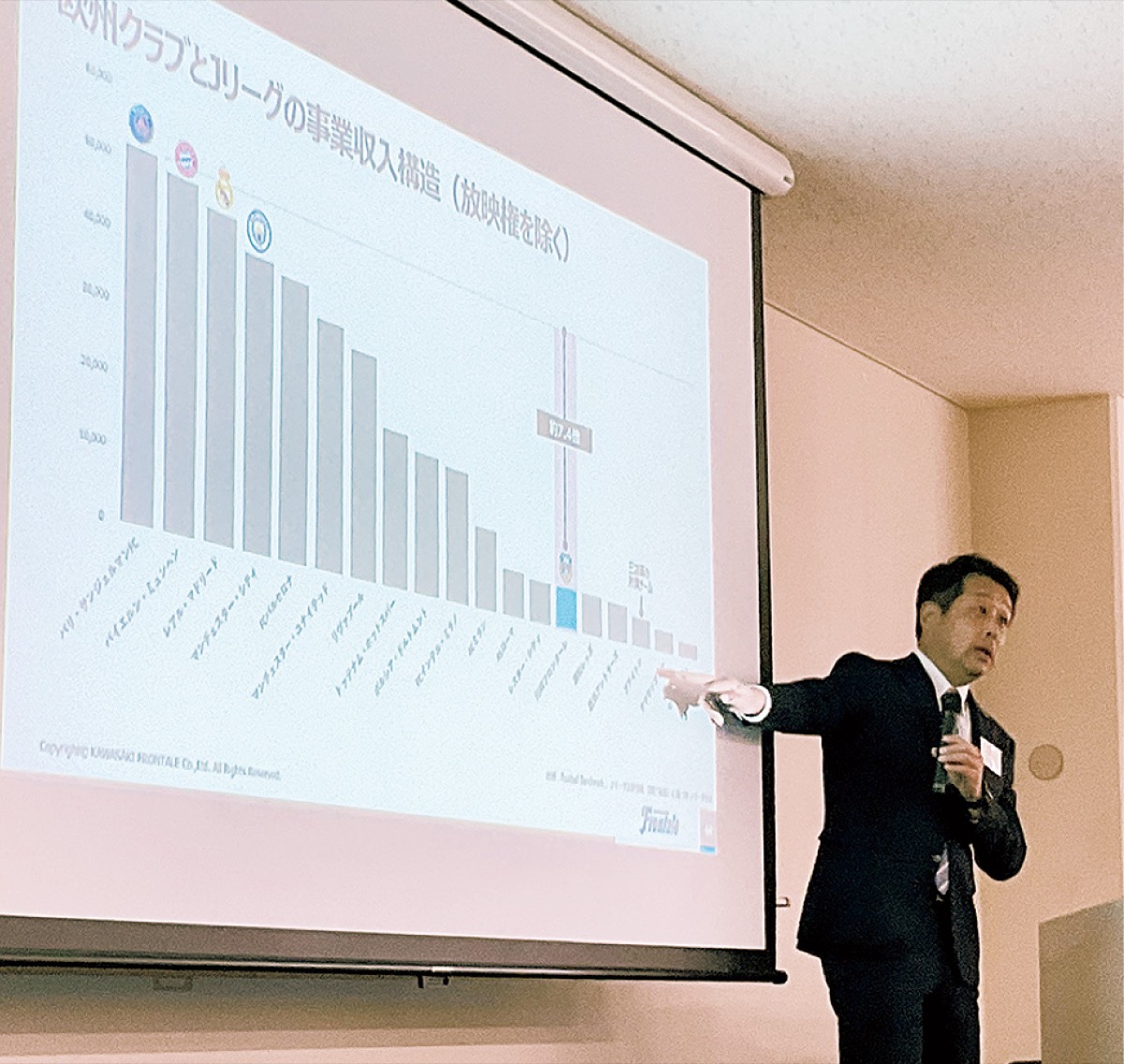 コロナ禍で3年ぶりの開催となった今回のテーマは「地域に根ざし、愛される企業のあり方」。講師として株式会社川崎フロンターレの吉田明宏代表取締役社長が登壇。地域に根付いたサッカークラブを目指し、生活に寄り添ったチーム運営を行っている同チームの具体的な手法や企業としての収支についてもレクチャーされ、参加した中小企業の経営者らが真剣な表情で耳を傾けていた。さらに参加者からの質疑応答も行われた後、交流会で各企業が親睦を深めていた。
