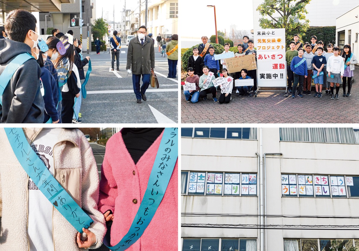 末長小学校の6年生が、3月7日〜9日に「株式会社富士通ゼネラル」の社員にむけて「元気交換プロジェクトあいさつ運動」を行った。これは向かいに位置する関係から1年生の頃より会社見学や出張授業など、学校では学べないことを沢山教えてくれた同社に6年間の感謝を伝えたいと、卒業を間近に控えた児童たちが自ら提案したもの。