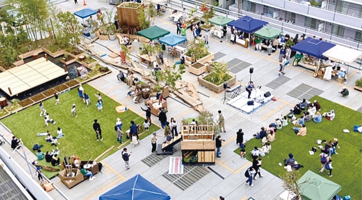 今回は溝口地域の緑化促進や造園家の表現の場作りに加え、植物をパレットに乗せて移動することが出来る「人工地盤緑化」の普及など、近隣住民の緑化意識の向上がテーマ。子どもから大人が環境問題を楽しく学びながら理解を深め、脱炭素や防災を考えるきっかけを提供する。また植物などを使って緑のある空間をデザインする専門家・戸村英子さんが会場の監修を担当、会場の芸術性を高めることも試みる。