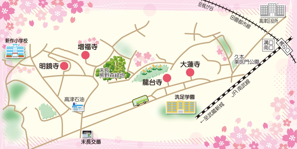 4月8日はお釈迦様のお誕生日―。毎年この日の前後には、全国の寺院で生誕を祝う「花まつり」が催されている。高津区内では大蓮寺(久本)、龍台寺(久本)、明鏡寺(末長)、増福寺(末長)の4寺院を巡るスタンプラリーが、7日(金)から9日(日)に開催される。今回で6回目で、各日午前10時〜午後5時頃まで。