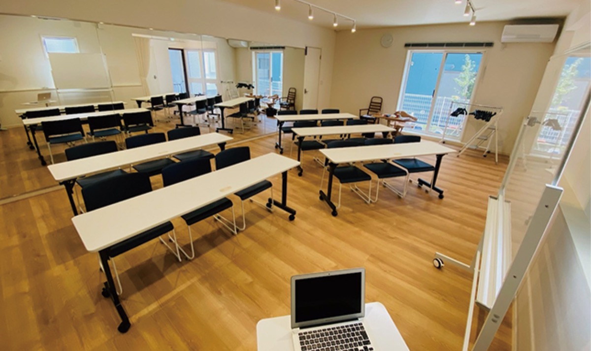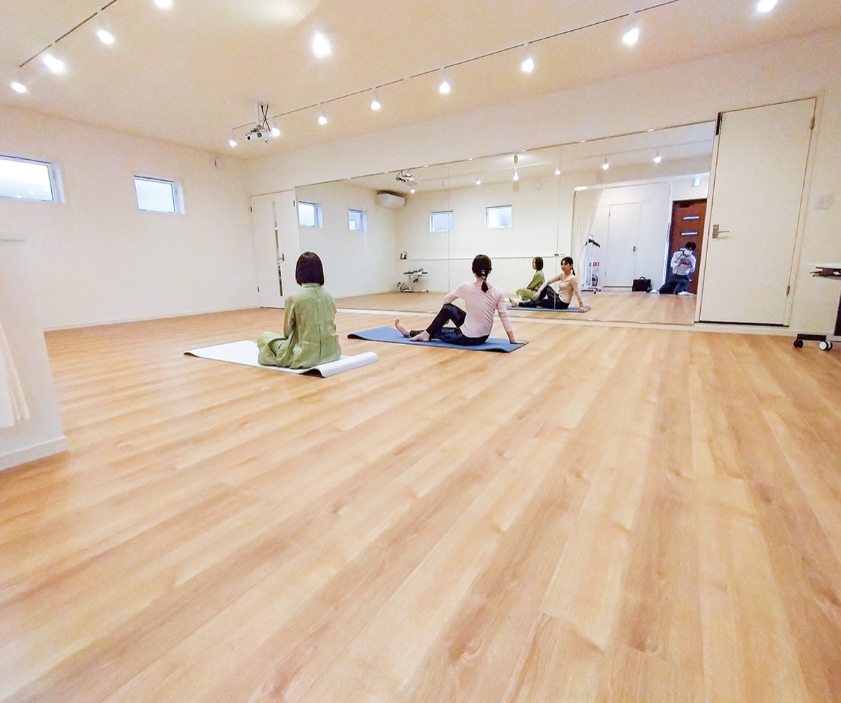 花壇に彩られた通路には、利用者のマイカーも駐車可能。スタジオには大型スクリーンやプロジェクター、オンライン配信用の音響設備も完備され、多岐に及ぶ利用者のニーズに対応。真野代表は「太極拳やヨガ、ピラティスなどのエクササイズでの利用のほか、様々なオンラインレッスンにも最適です」とPR。さらに「当社スタジオのテーマは『癒し』。心と体を癒すレッスン、セミナー、ワークショップなどにぜひご利用を」と呼び掛けている。