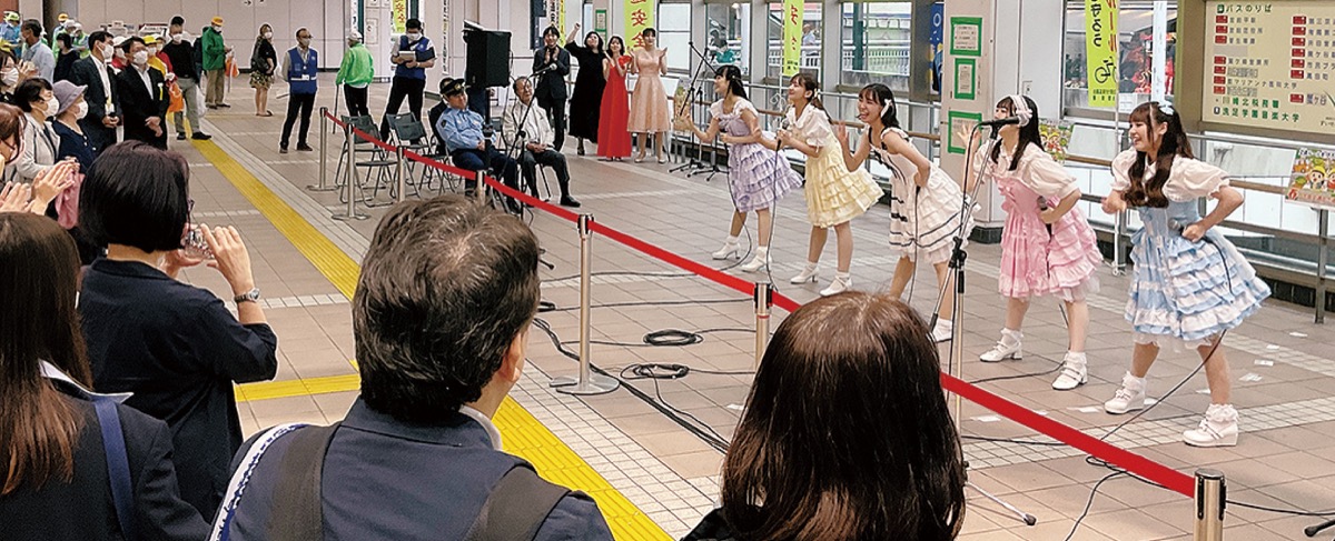 11日から20日の春の交通安全運動に合わせて実施。当日は、洗足学園音楽大学ミュージカルコースの学生12人も参加。華麗な衣装で計6曲を歌い、最後に同大学のオリジナル曲を交通安全の歌詞に替え歌した曲を披露し、キャンペーンに花を添えた。