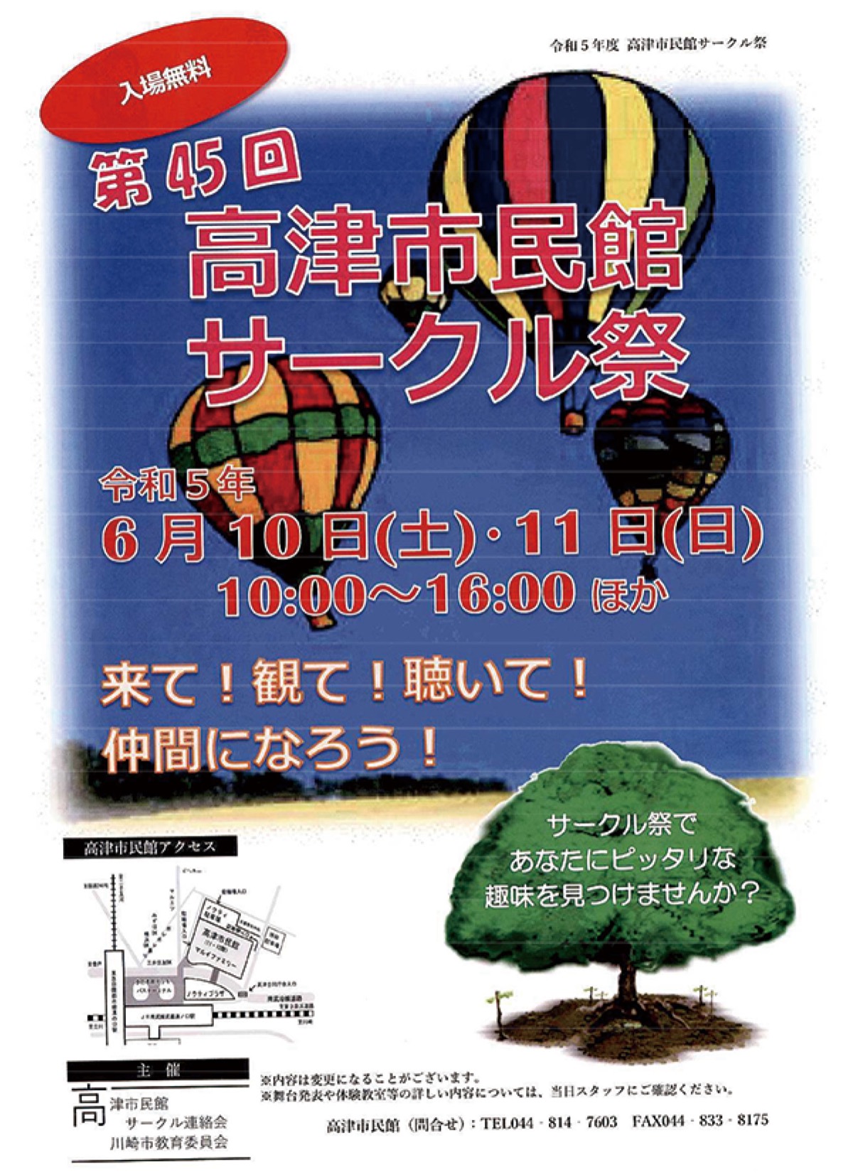 区内で活動している文化系活動グループが一堂に集う「サークル祭」が、あす6月10日(土)と11日(日)に高津市民館で行われる。主催は高津市民館サークル連絡会。参加は無料。