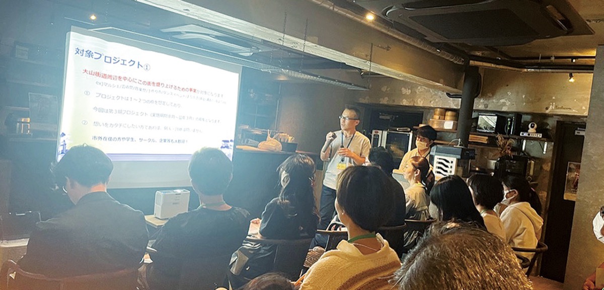 主に大山街道周辺の盛り上げを図る企画を広く市民から募集し、実施していくプロジェクト。今回の座談会には、新規の参加者など、2日間で10代から50代までの45人が集まった。