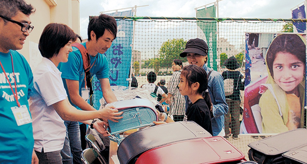 西高津中に通う1年生がつい数カ月前まで背負っていたランドセルを寄贈するこの取り組み。また贈り先となるアフガニスタンの実情について知ってもらおうと「パネル展示」なども行われ、ボランティア意識醸成などにも結び付けている。