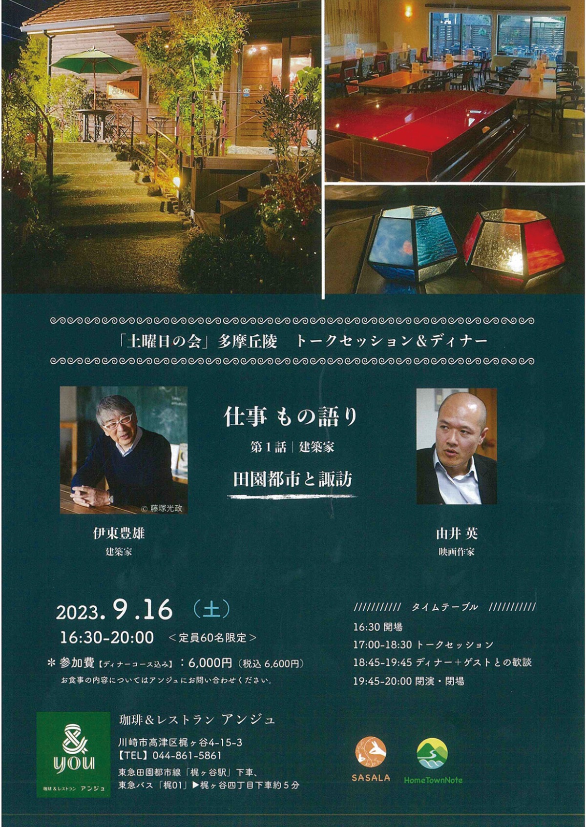開催時間は午後4時30分から8時で、参加費は6600円(アンジュのディナーコース込み)。定員60人限定。