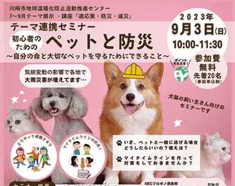 川崎市地球温暖化防止活動推進センターが9月3日(日)に高津市民館で「ペットと防災-自分の命と大切なペットを守るためにできること」を開催する。